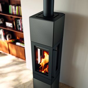 Hoch, schlank, elegant – mit seiner spektakulären Form setzt der Kaminofen ASTANA ein klares Statement. Über drei Sichtscheiben ist das Flammenspiel von jedem Ort im Raum erlebbar. Mit verschiedenen Farben und edlen Oberflächen lässt sich der Ofen individuell auf das persönliche Wohnambiente abstimmen: ASTANA ist wahlweise mit handgefertigter Keramik in Lamellentextur, glatter Keramik-Oberfläche, natürlichem Speckstein oder einer Stahlvariante in unterschiedlichen Farbtönen erhältlich. Das Rohr für den abziehenden Rauch kann entweder oben oder hinten angeschlossen werden. Passend zum Designofen bietet HASE passende Regale zur Holzlagerung an, die sich flexibel integrieren lassen.