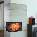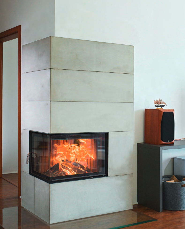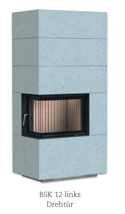 Ausschließlich mit Drehtür. Die kompakte Eck-Ausführung mit Blick aufs Feuer von zwei Seiten.