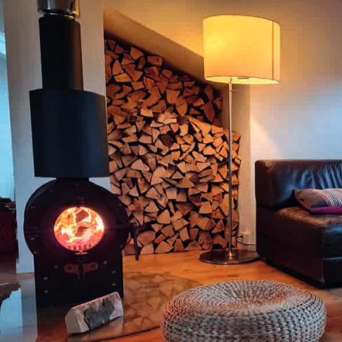 Meine runde Brennkammer ist ideal für die Verbrennung von Holz. Durch die runde Form wird die rückstrahlende Energie im Brennraum fokussiert. Diese beschleunigt die Entgasung der kleinen Brennholzauflage. Das heißt, es wird mehr Brenngas in kürzerer Zeit freigesetzt und dadurch erreicht man eine hohe Verbrennungstemperatur. Denn heiße Feuer brennen effektiv und sauberer. Kurz gesagt, schwäbisch sparsam und sauber geheizt.