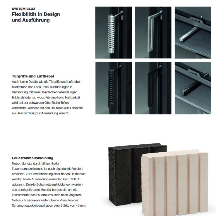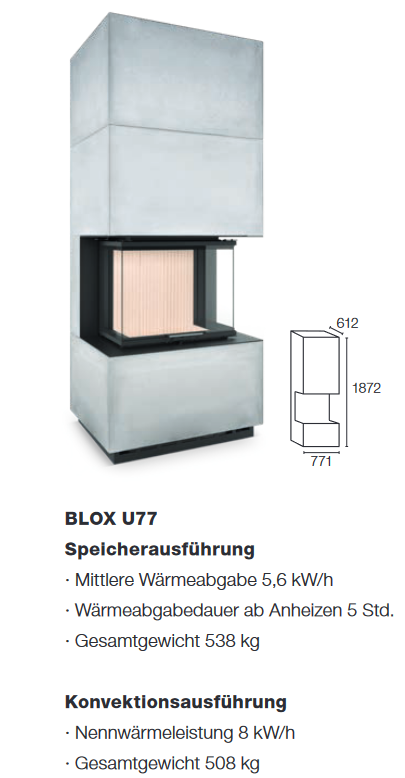 BLOX-Modulkamine sind eine einzigartige Kombination aus Technologie und Design. Sie zeichnen sich durch ihre schnelle und intuitive Installation aus. Sie bestehen aus einem Kamineinsatz, einem Stahlsockel mit speziellen Schienen für die Luftzufuhr und einer Betoneinfassung. Optional können Sie bei der Konfiguration des Produkts zwischen konventionellem Konvektionsbetrieb oder Speicherheizung wählen.