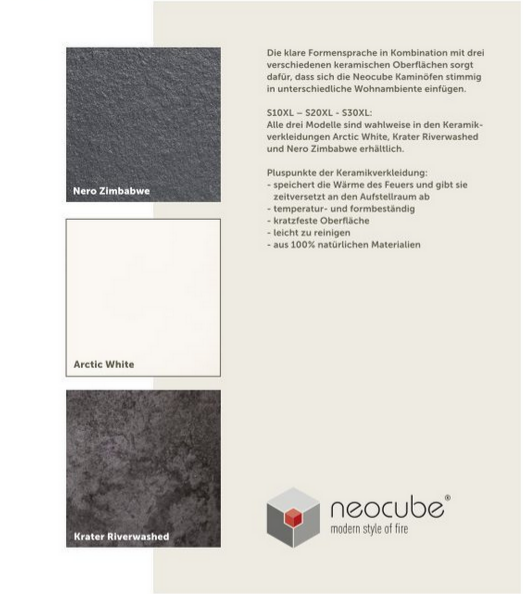 Neocube Kaminofen S10XL oder S20XL- mit Zusatz-Speicher 30kg