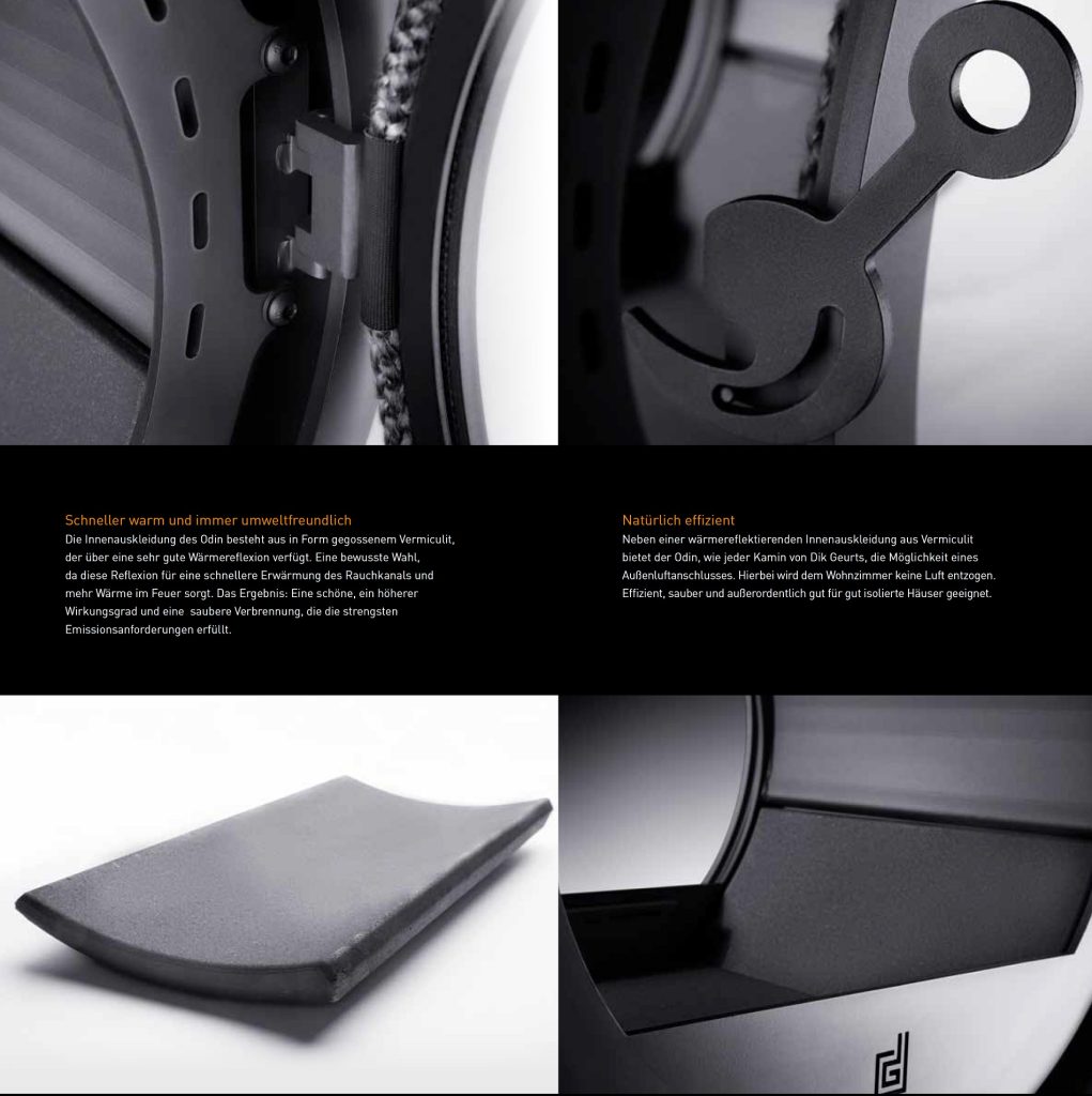 Unter den Gesichtspunkten Einfachheit, Effizienz und Schönheit entworfen und fachkundig hergestellt: Das ist der Odin von Dik Geurts.Sein einzigartiges rundes Design macht ihn nicht nur zu einem echten Hingucker, sondern seine Form garantiert auch ein großartiges Flammenspiel. Flammen, die mit einem einzigartigen Luftschieber kontrolliert werden können, den es nur bei Dik Geurts gibt.