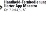 Bei Maestro ist alles inbegriffen, es entstehen keine weiteren Kosten für das WLAN-Set, ein Zubehör, das normalerweise separat erworben und installiert werden muss. Ein doppeltes WLAN-Modul ist serienmäßig integriert und es verbindet sich problemlos mit Ihre Smartphone oder dem hauseigenen Netz. Für all jene, die nicht ihr Smartphone verwenden möchten, steht alternativ eine Handheld-Fernbedienung (Zubehör) mit bereits installierter App zur Verfügung.