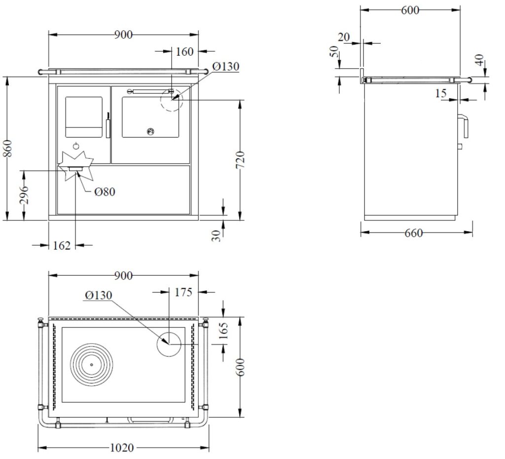 - Umlaufende Herdstange (abnehmbar)